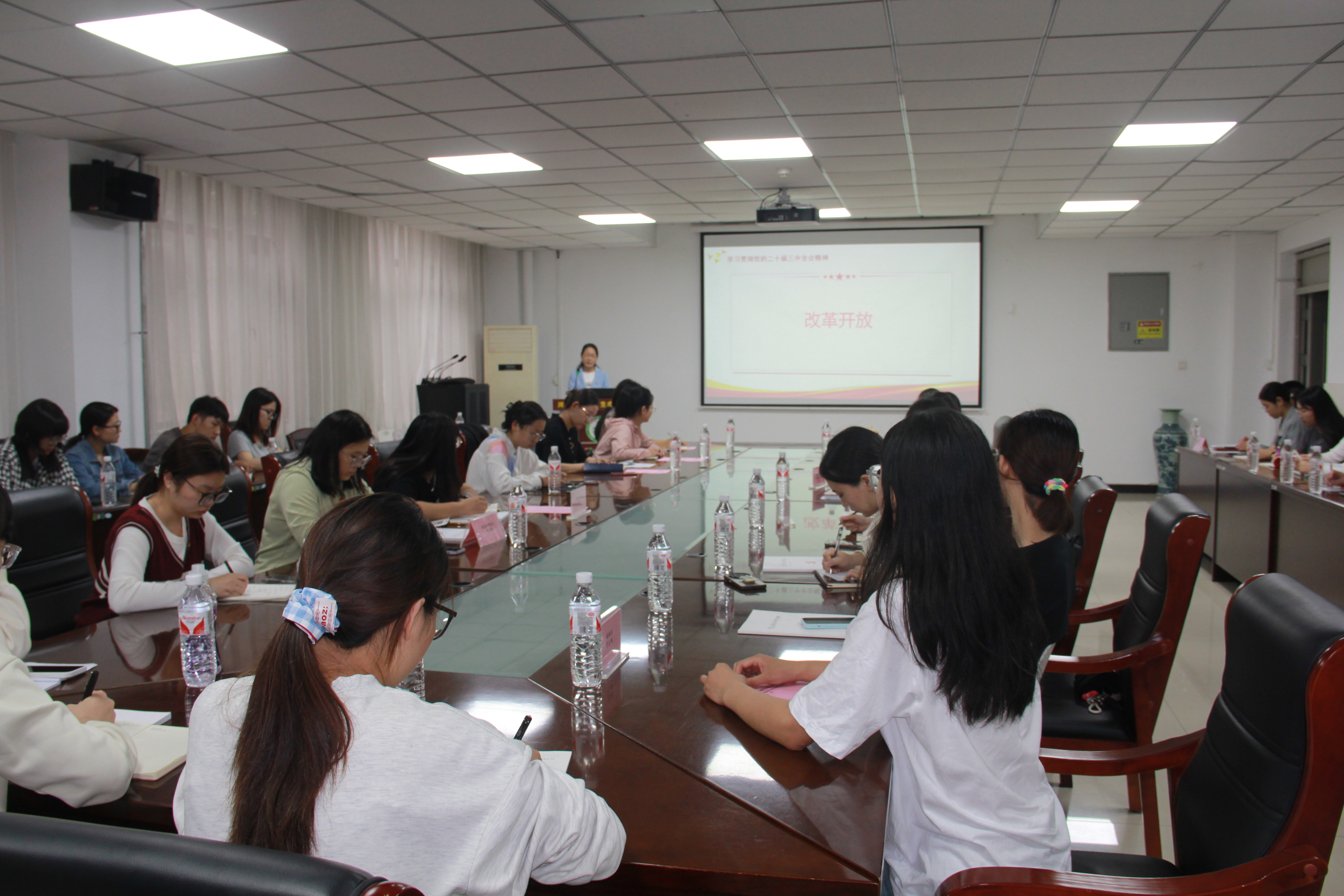 9月29日下午,日本成人视频 在理科群3号楼A110会议室召开党的二十届三中全会精神宣讲会,学院党委书记张晓红主讲,党委副书记陆岩主持,学生党支部书记、支委和学生党员40余人参加。