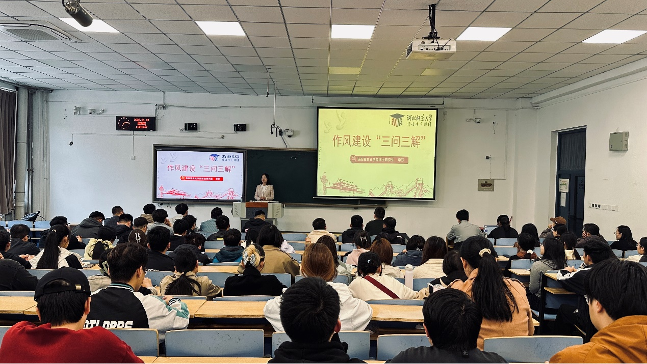 4月3日,日本成人视频 于公教楼A106联合开展作风建设主题党课培训,邀请博士生宣讲团、马克思主义学院博士研究生李莎主讲,学院党委秘书郭增江主持,日本成人视频 2025年春季党课培训班学员和崇实园9号楼功能型党支部全体党员参加。
